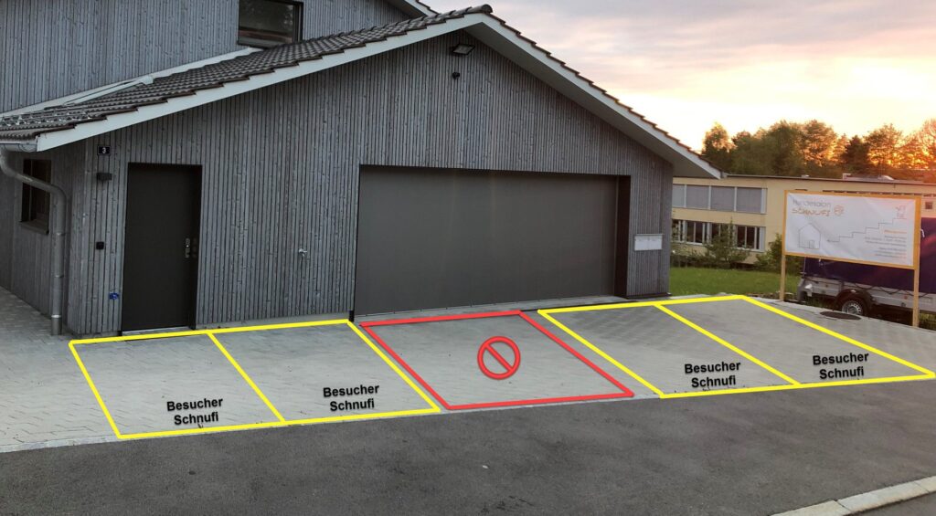 Parkplätze sind an der Strasse und direkt vor dem Gebäude vorhanden.
